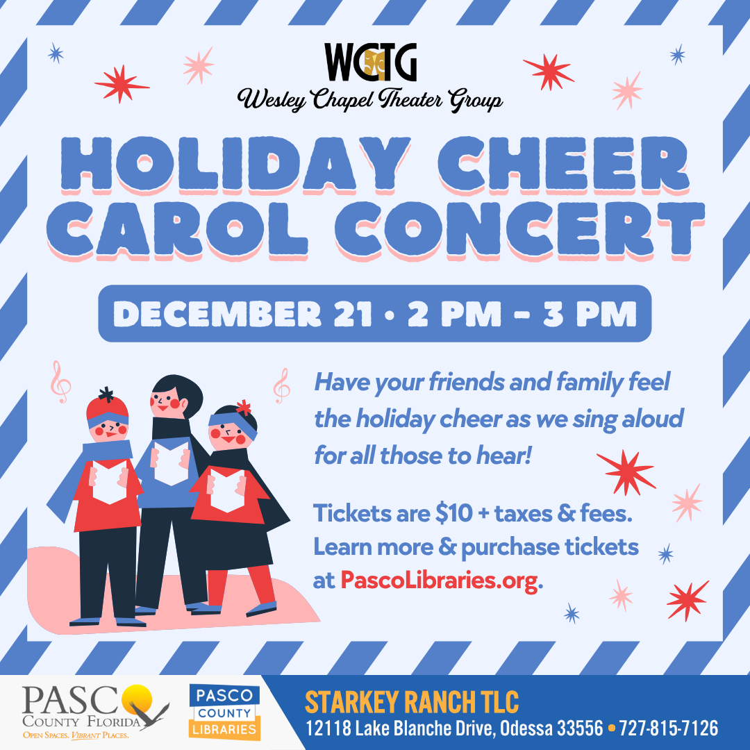 Have your friends and family feel the holiday cheer as Wesley Chapel Theater Group sings aloud for all those to hear! Embark on a musical journey with a talented cast as they perform classic Christmas carols and holiday favorites, loved by audiences of all ages.