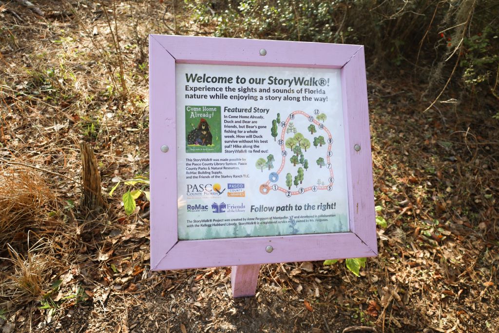 Our Withlacoochee StoryWalk®, located in Dade City, is a 0.30-mile trail with 18 posts. Station posts feature pages from the story Come Home Already! by Jory John, along with interactive prompts and fun facts.