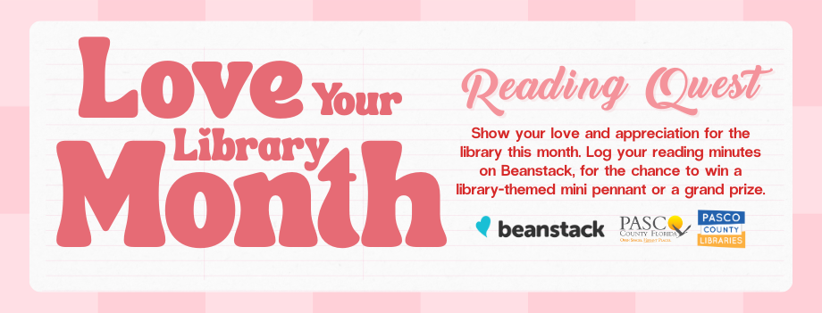 February is Love Your Library Month! Celebrate your love for Pasco Libraries by reading stories, exploring free resources, and sharing heartfelt messages. Log your reading and activities all month long and see how many badges you can earn along the way.
