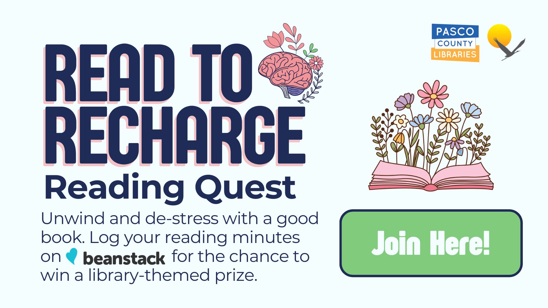 Patrons of all ages may enter to win prizes by completing quests through Beanstack (pascolibraries.beanstack.org). Each Pasco County library branch may offer additional prizes with varying requirements. Participation in the Beanstack reading quests is not required, but winning individuals must be present to pick up the prize at a Pasco County Library branch. If you’d like to enter to win without participation please email librarydigitalservices@pascolibraries.org. Facebook, Instagram, and X are not endorsing or sponsoring this contest.