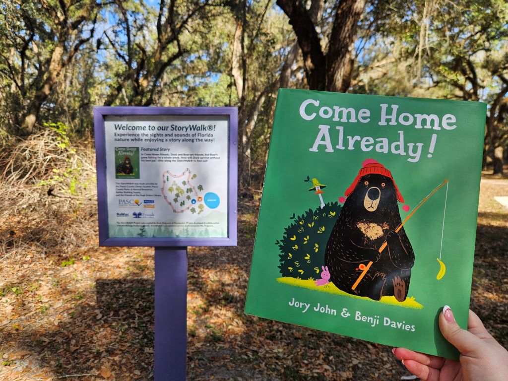 Our Withlacoochee StoryWalk®, located in Dade City, is a 0.30-mile trail with 18 posts. Station posts feature pages from the story Come Home Already! by Jory John, along with interactive prompts and fun facts.
